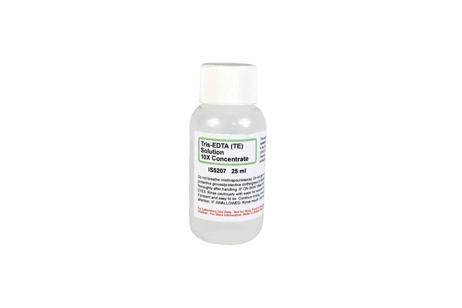 Tris-EDTA (TE) buffer is a buffer solution commonly used in molecular biology, especially in procedures involving DNA, cDNA or RNA. The purpose of this TE buffer is for diluting DNA samples, while protecting it from degradation. Solution is a 10X concentrate in 25mL bottle.