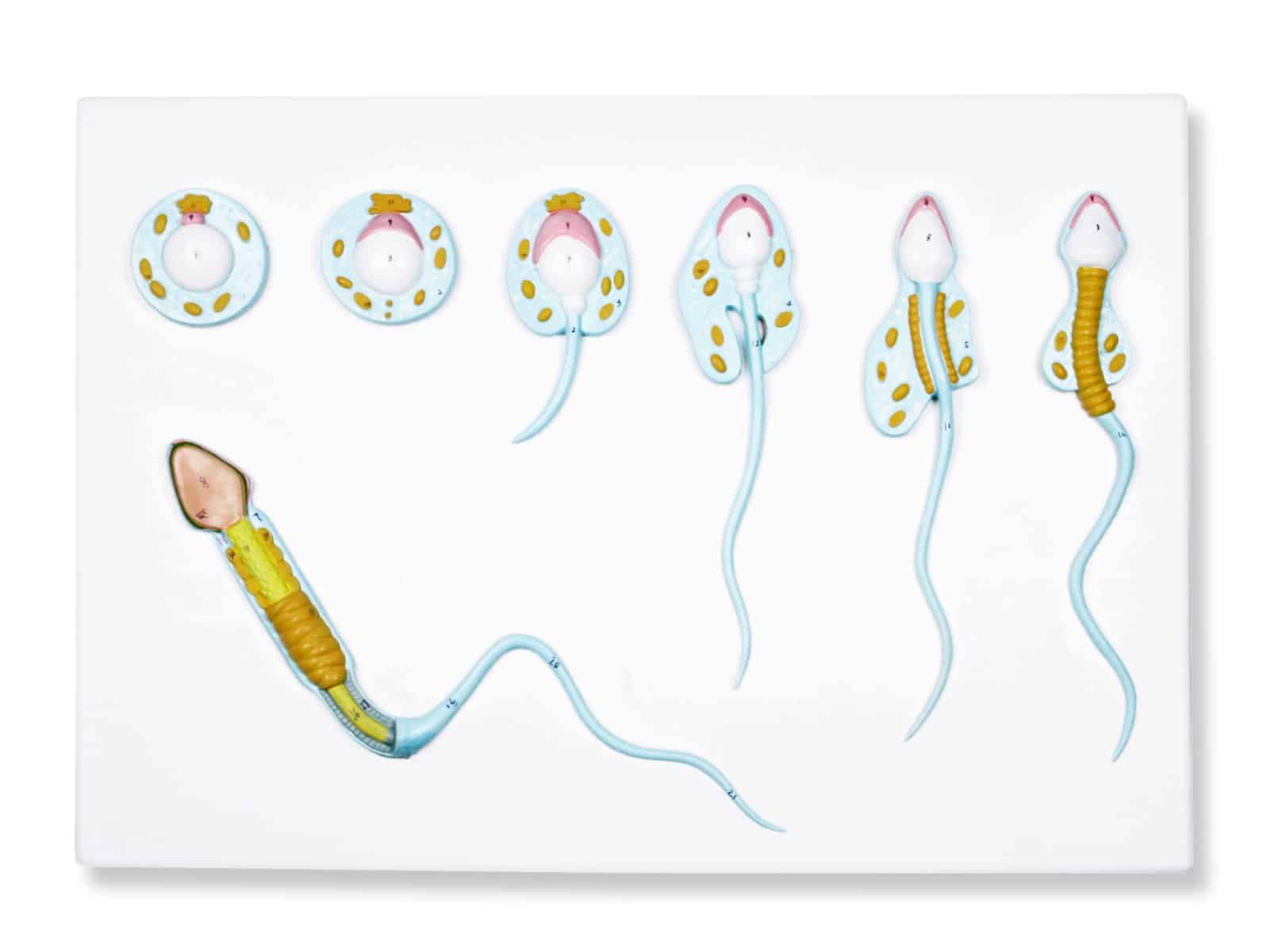 Magnified 10,000X, the process of spermatogenesis from spermatid to the mature spermatozoon is shown. All significant features are numbered and identifiable on the included key. Mounted on a durable plastic base and made from high quality medical PVC.