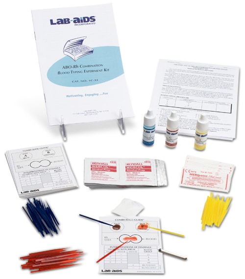 This popular kit combines all the features of the Basic Blood Typing (LA1-32) and the Rh Blood Typing (LA1A-32) kits with a specially designed Side Guide®. It provides information on several different subjects related to blood typing: