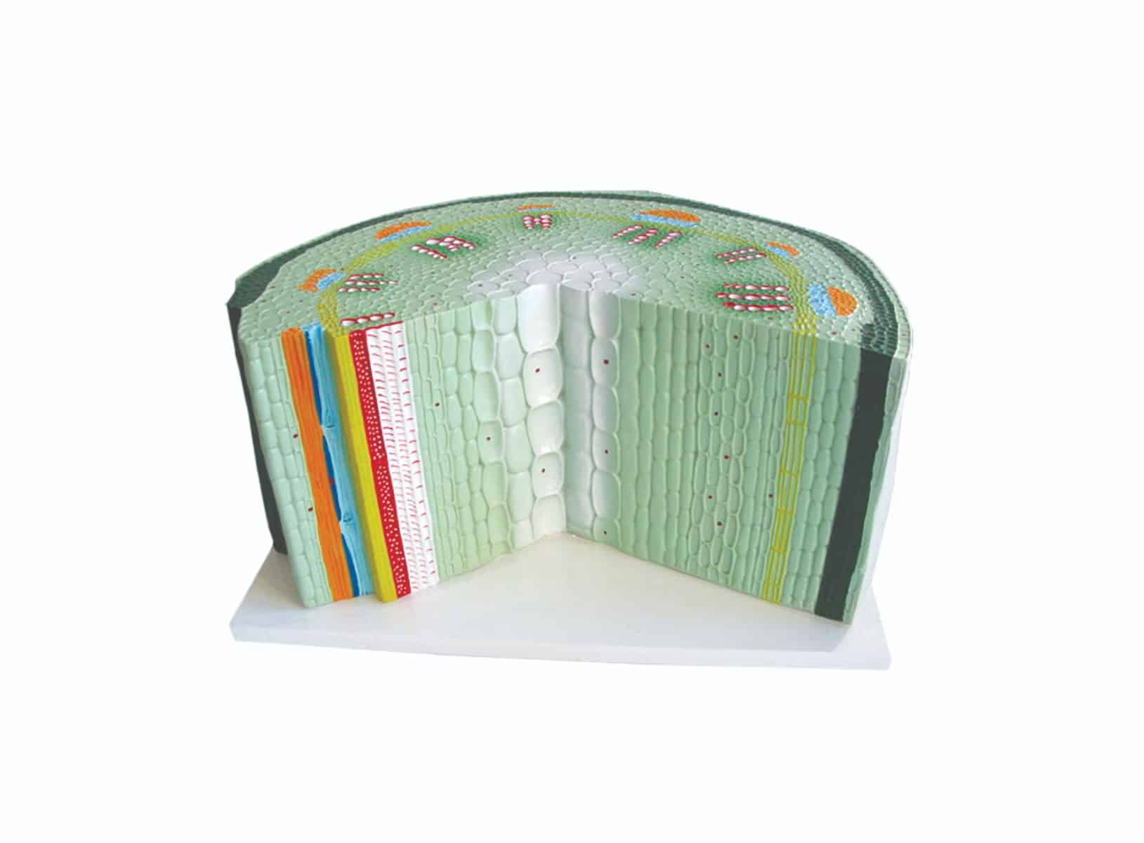 Modeled after a sunflower, this one year dicot stem gives anatomy in cross, radial and tangential sections. Shows epidermis, cork layer, phloem region, cambium, xylem region, pith and vital structures. Enlarged 150X and mounted on a plastic base. Model is made exclusively from high quality PVC.