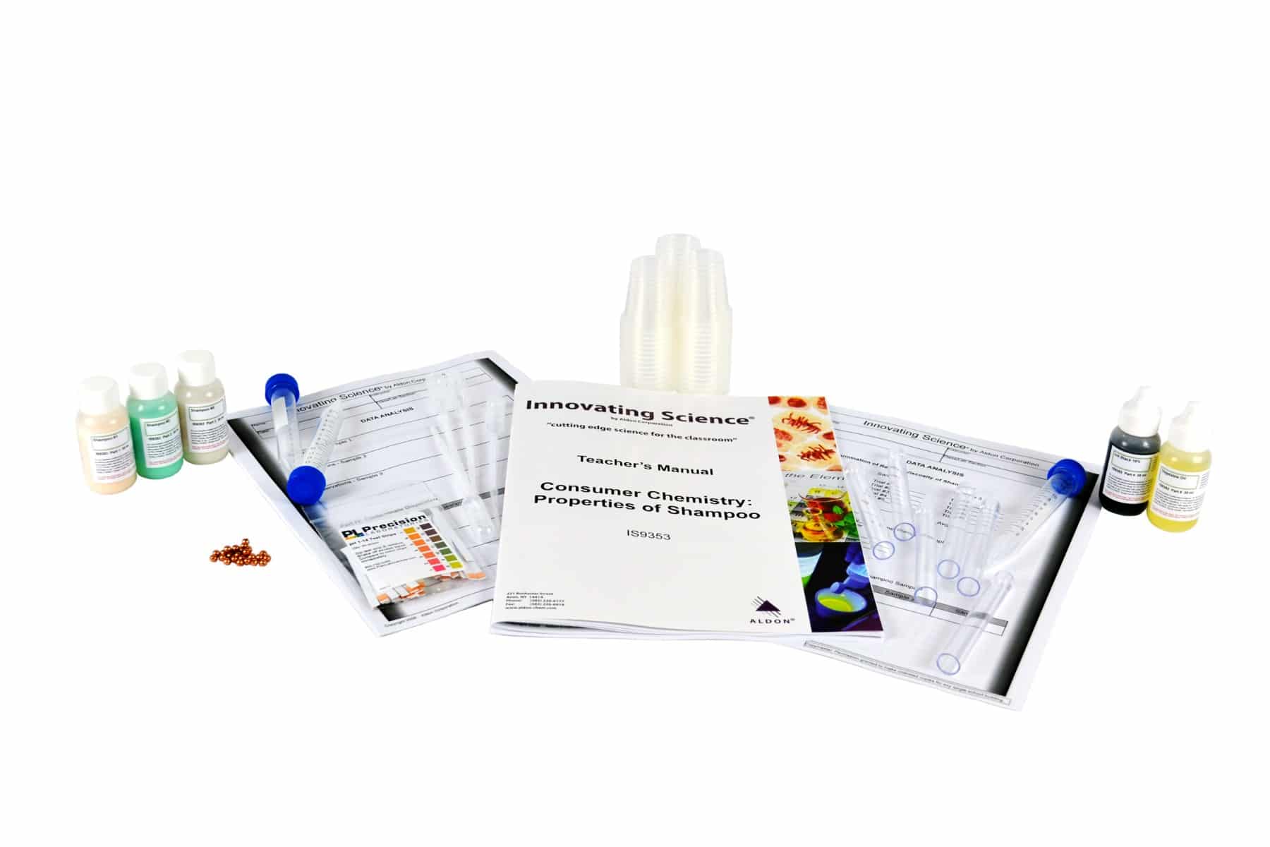 Different shampoos are manufactured from a variety of ingredients to perform a variety of tasks. In this investigation, students will not only learn about the role of several shampoo ingredients, but also test several properties of different shampoos which are included in the kit. Students will determine the relative viscosity, pH, flash-foam formation and retention, oil emulsification, and contaminant-dispersion abilities of different shampoos. Kit contains enough materials for fifteen groups.