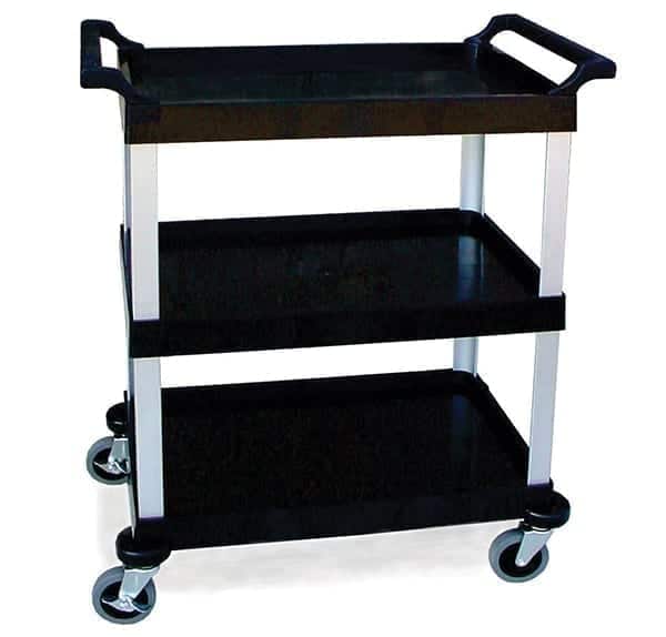 This standard duty plastic utility cart is made of stain and odor resistant material that maintains sanitation. The sturdy construction is impact-resistant and the 4″ all swivel casters provide ultimate maneuverability. This cart is easily assembled without hardware.