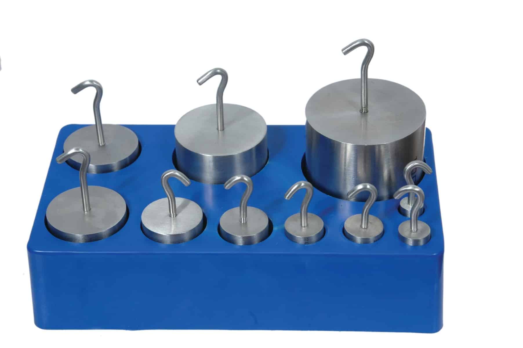 Individually calibrated weights made of high quality stainless steel. Both sets come with a sturdy plastic storage block. Set of 9 includes one each of 5g, 10g, 50g, 100g, and 500g, plus two each of 20g and 200g weights.