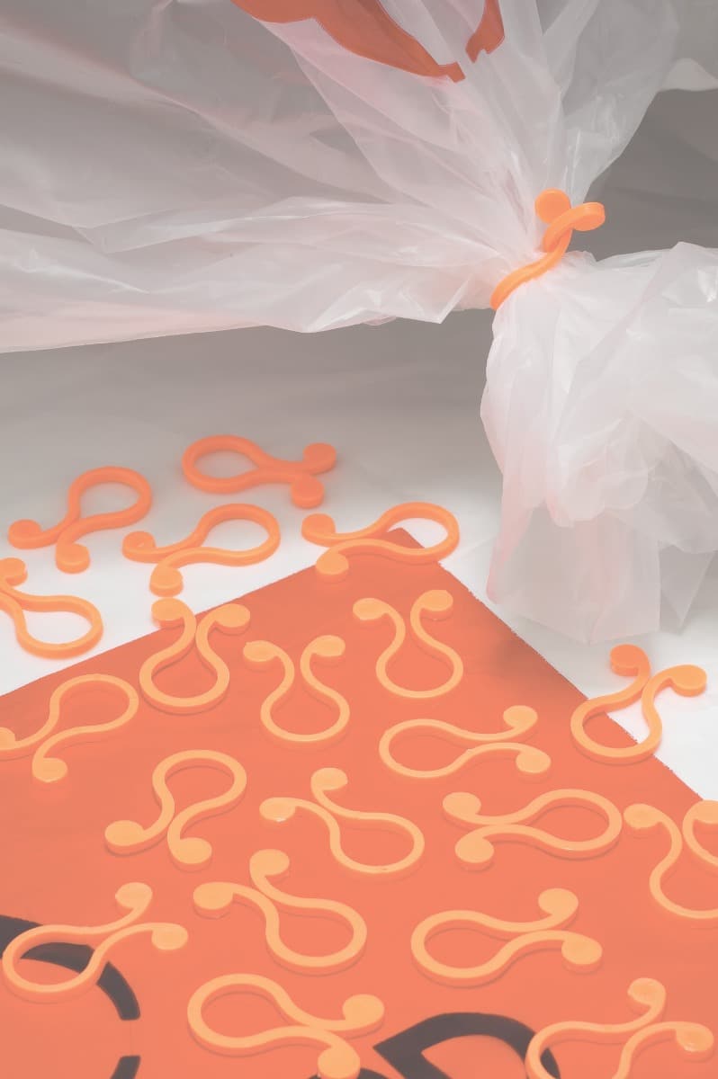 These clips can be opened and closed with one hand to easily and securely close the gathered top of an autoclave bag after it has been filled with waste.