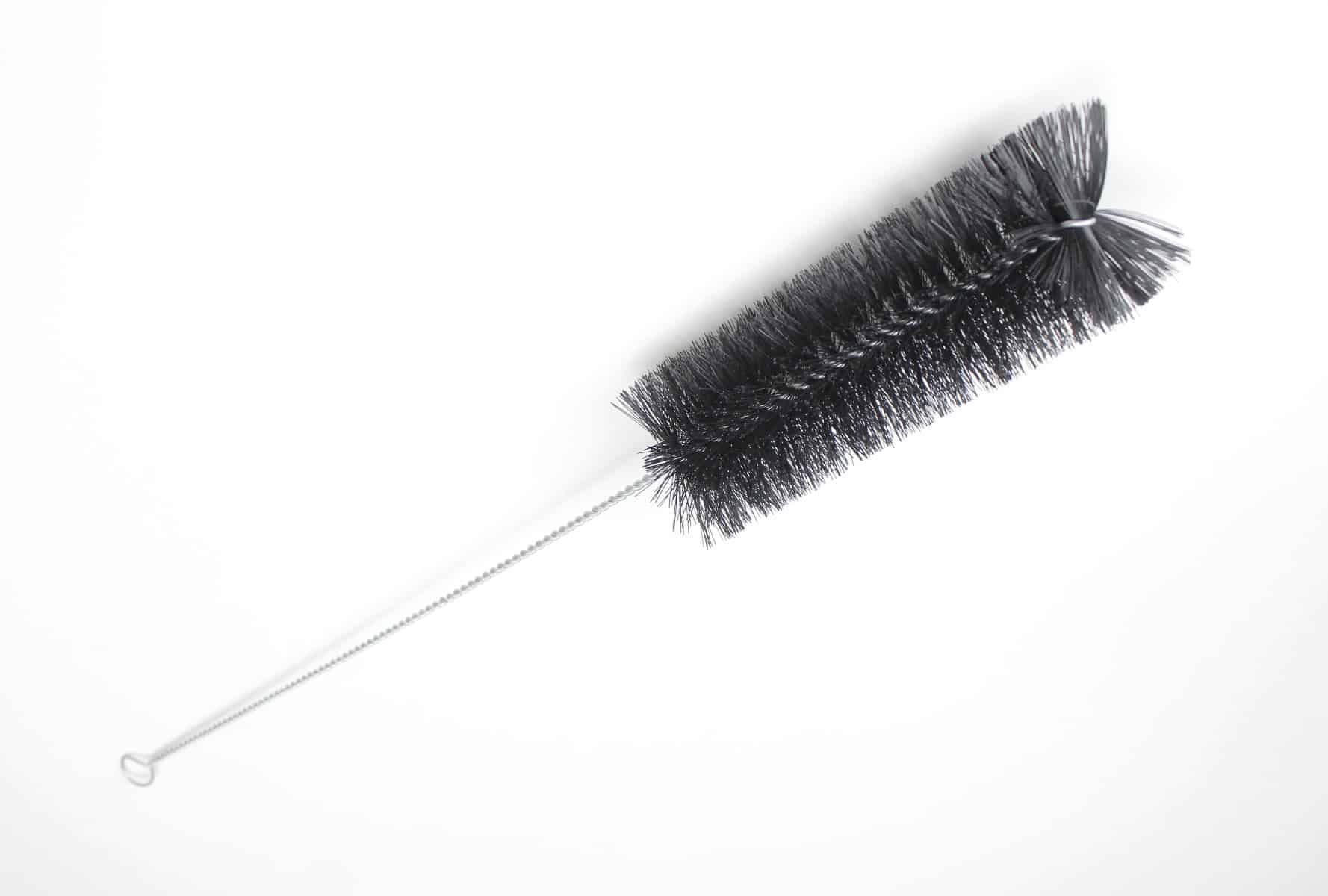 Designed for cleaning cylinders, bottles, and large test tubes. Features nylon bristles with a radial top mounted in twisted heavy gauge galvanized wire. Brush length is 7″, brush diameter 2.5″, and overall length is 20″.