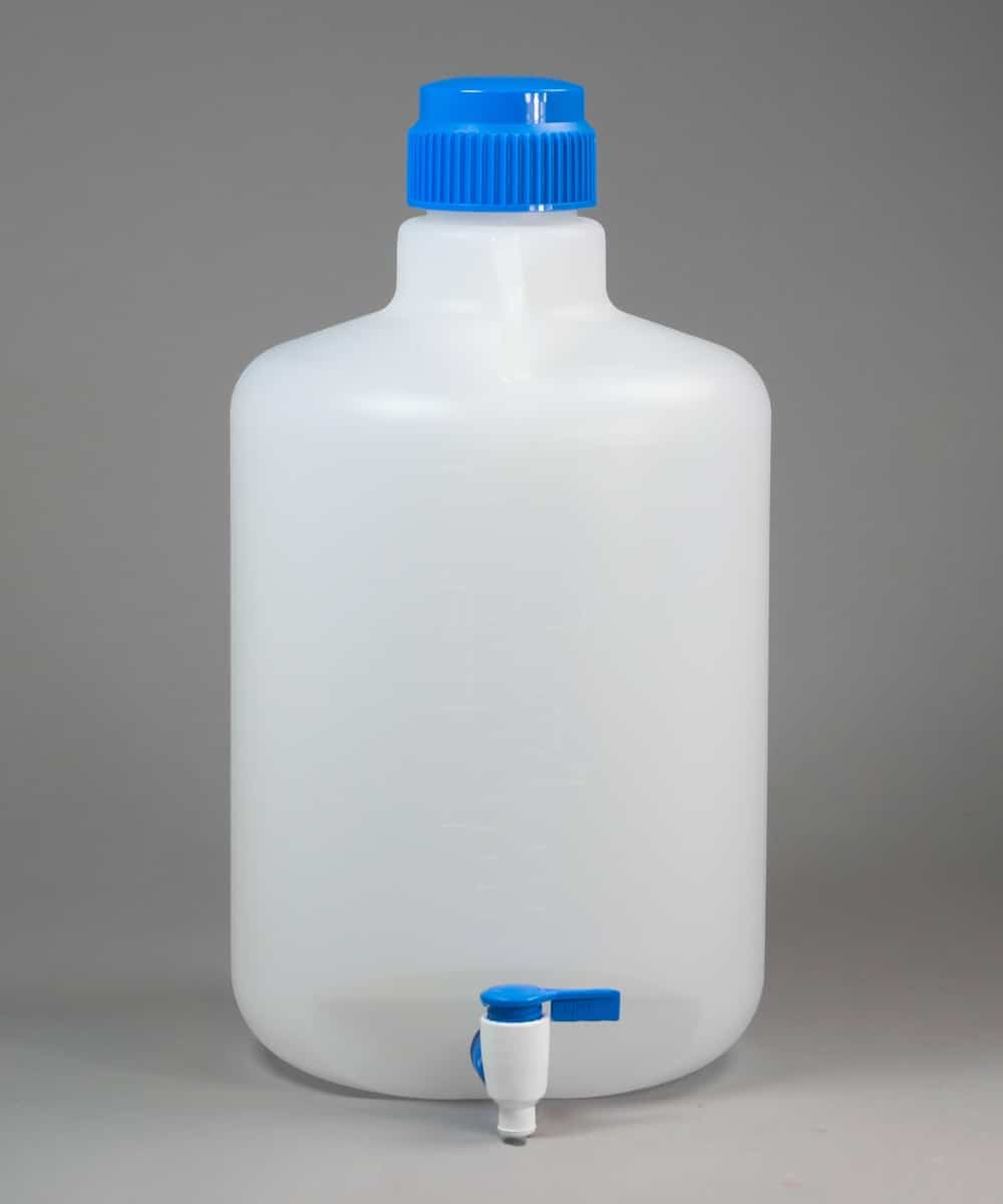 Heavy-duty carboys have a molded-in, threaded bung that receives the spigot. Their large capacity is ideal for holding sterile solutions. When autoclaving, do not install cap. All polypropylene construction is autoclavable 121ºC (250ºF) and chemical resistant.