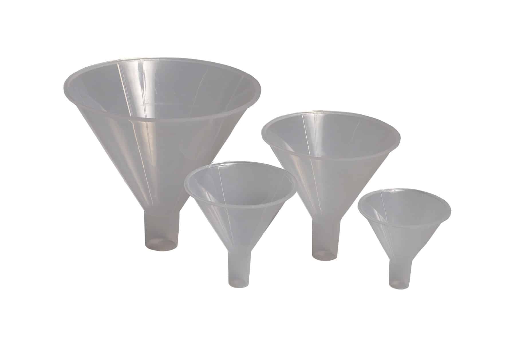 Polypropylene funnels have short, wide stems for convenient use with powders. Autoclavable.