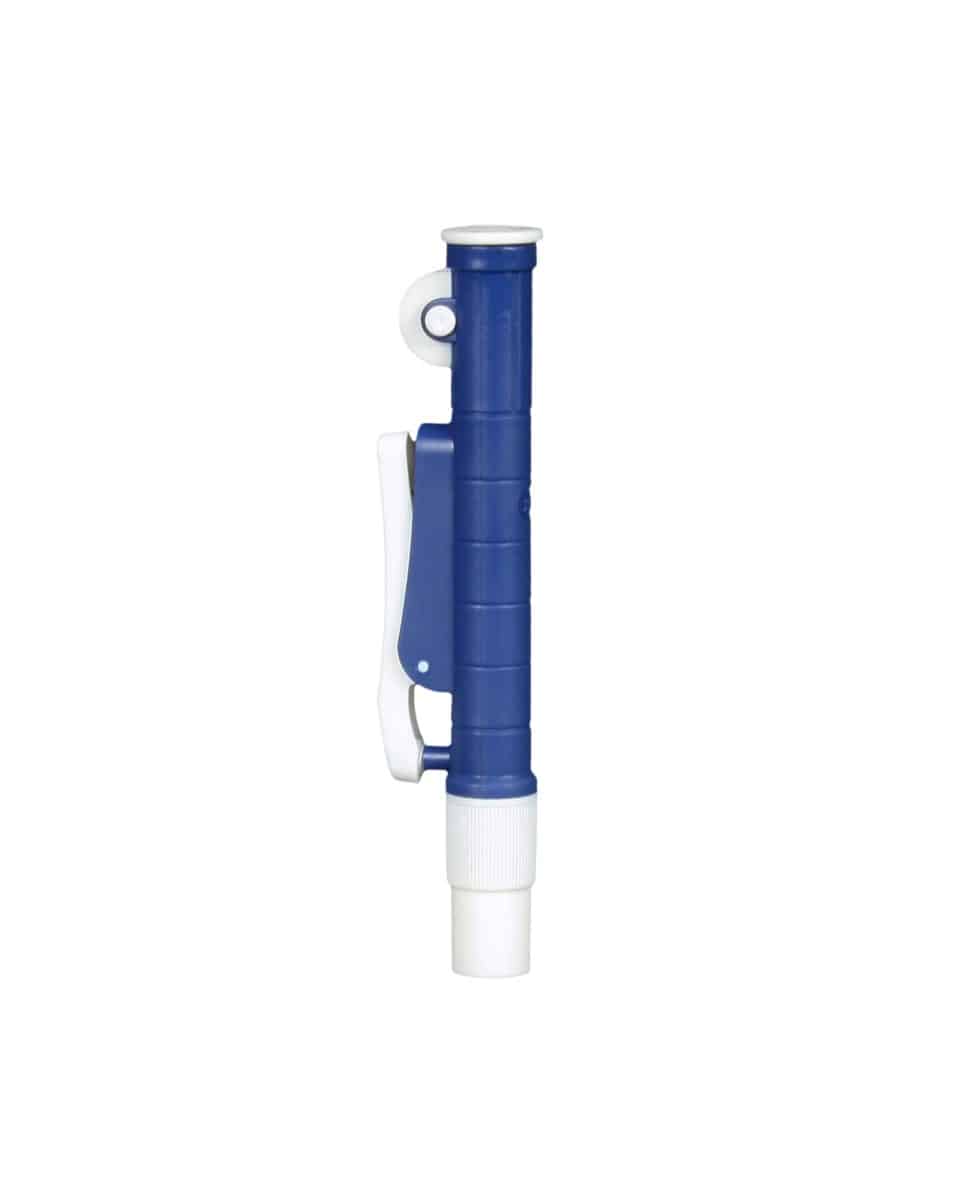 Walter pipette pumps are made of lightweight and durable materials and are designed to allow for an easy one-handed operation. Rotation of the thumbwheel draws or dispenses the liquid with precision and ease. The side lever allows the entire contents to be dispensed rapidly and efficiently. Each pipette pump is designed to work with both glass and plastic pipettes and are color coded to distinguish the different sizes (Blue=2mL, Green=10mL, Red=25mL).