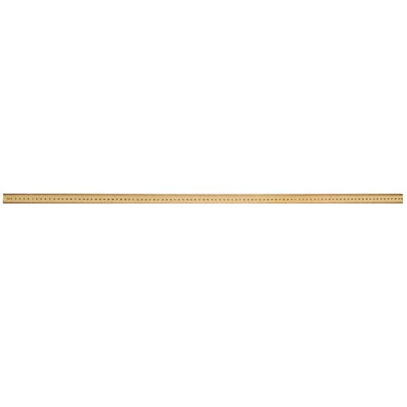 This high-quality meter stick is made from varnished hardwood and has permanently engraved black scales in metric and US standard units. One side is graduated in centimeters in 1 mm increments. The reverse side is graduated with inches in 1/8″ increments. Meter stick is 1m (39.4″) long and 7mm (0.3″ wide).
