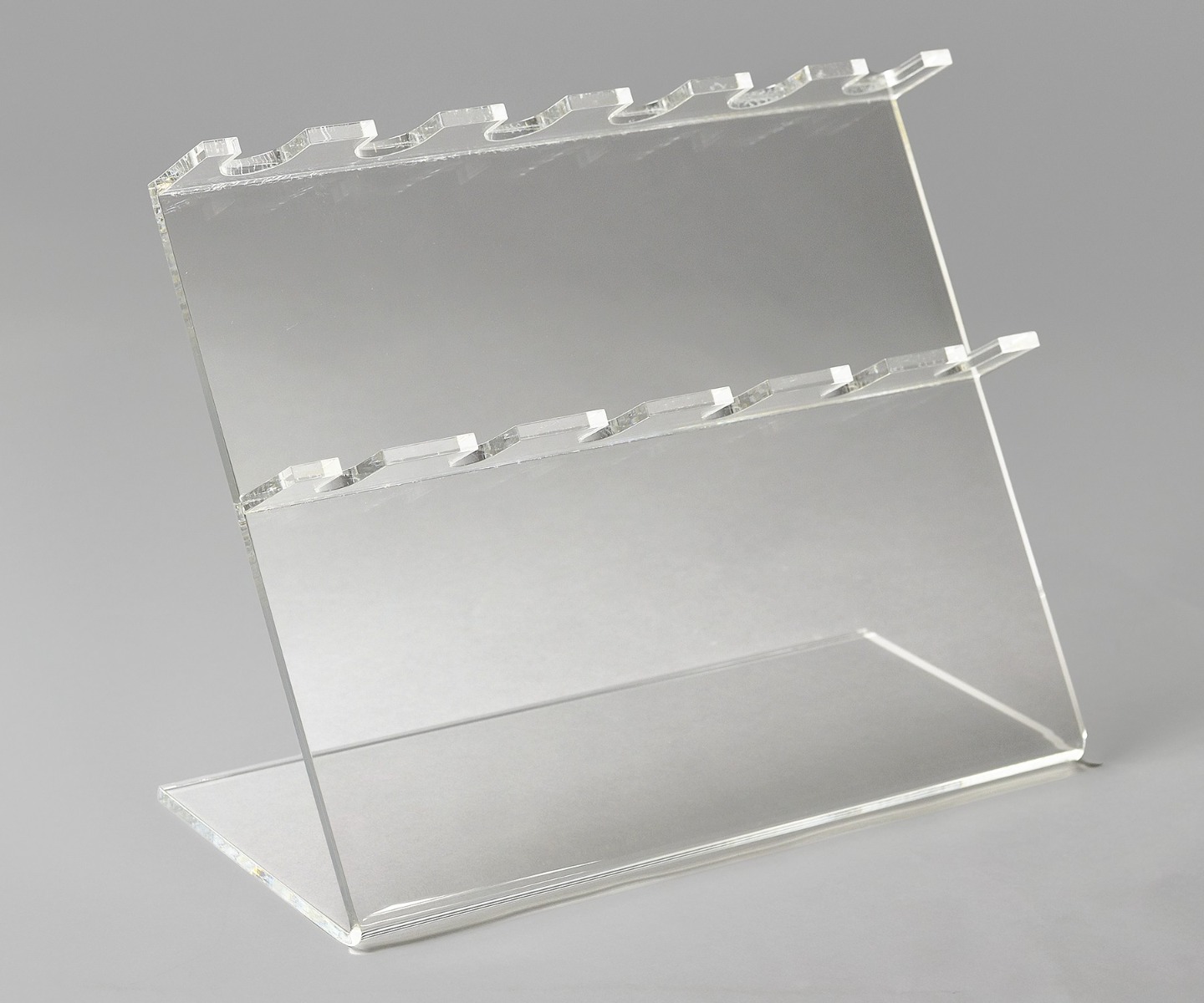 Keep up to 6 pipettors at hand with this holder. Cutouts on 2 shelves hold and support the most popular pipettor models. Available in clear acrylic with slots to hold pipettors.