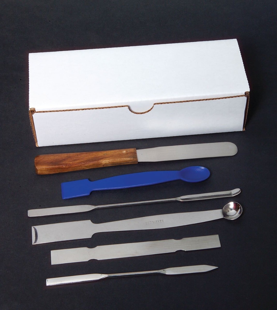 - 6″ polypropylene spatula, one end flat, one end spoon