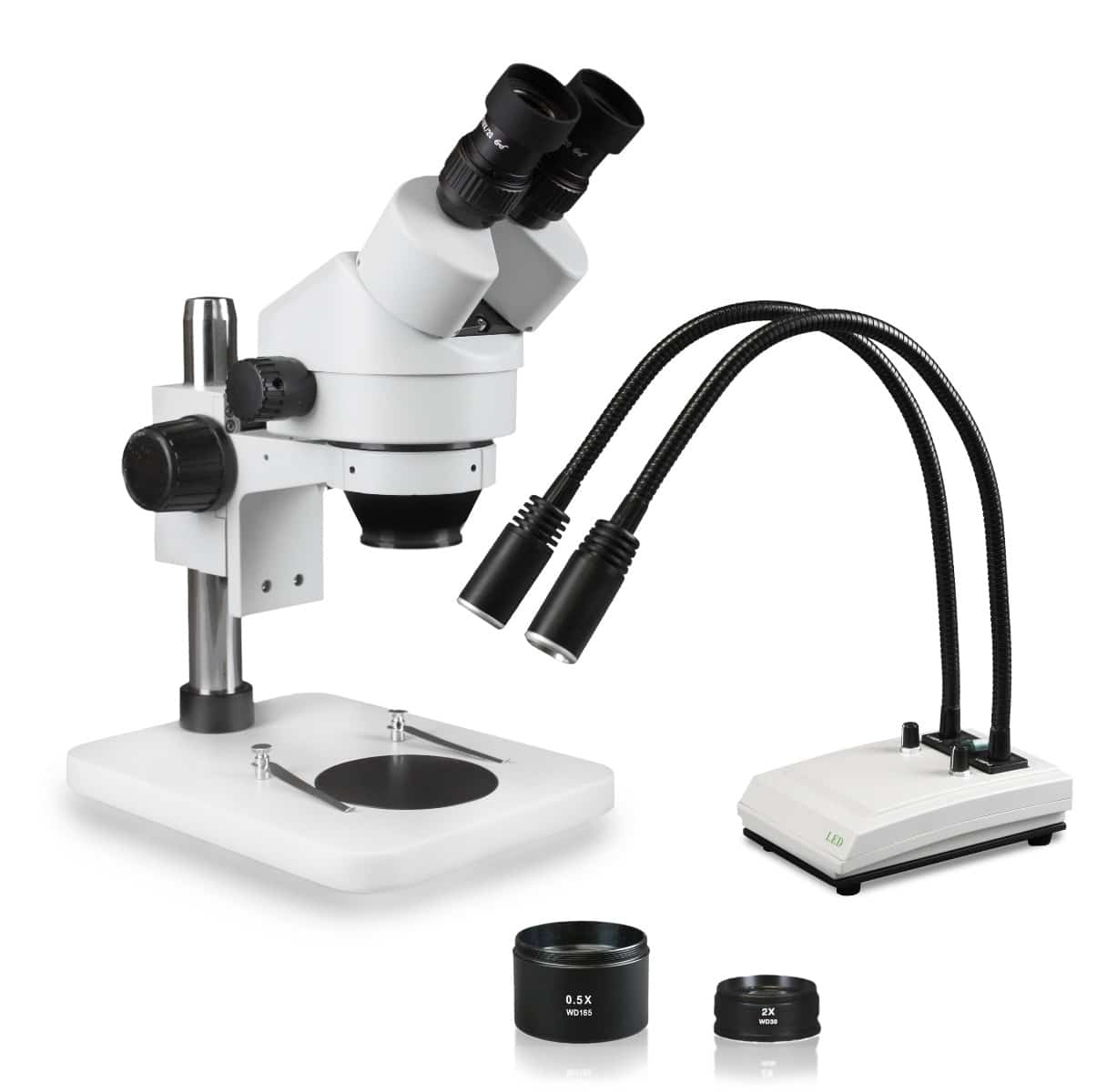 WP-1EZ-IHL20 Binocular Zoom Stereo Microscope – 0.7X-4.5X Zoom Range, 0.5X & 2.0X Auxiliary Lenses, Dual Gooseneck LED Light