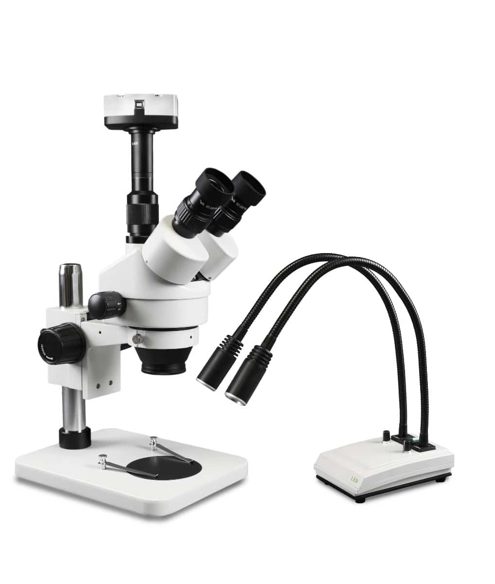WP-1F-IHL20-5N Simul-Focal Trinocular Zoom Stereo Microscope – 0.7X-4.5X Zoom Range, Dual Gooseneck LED Light, 5MP Digital CMOS Camera