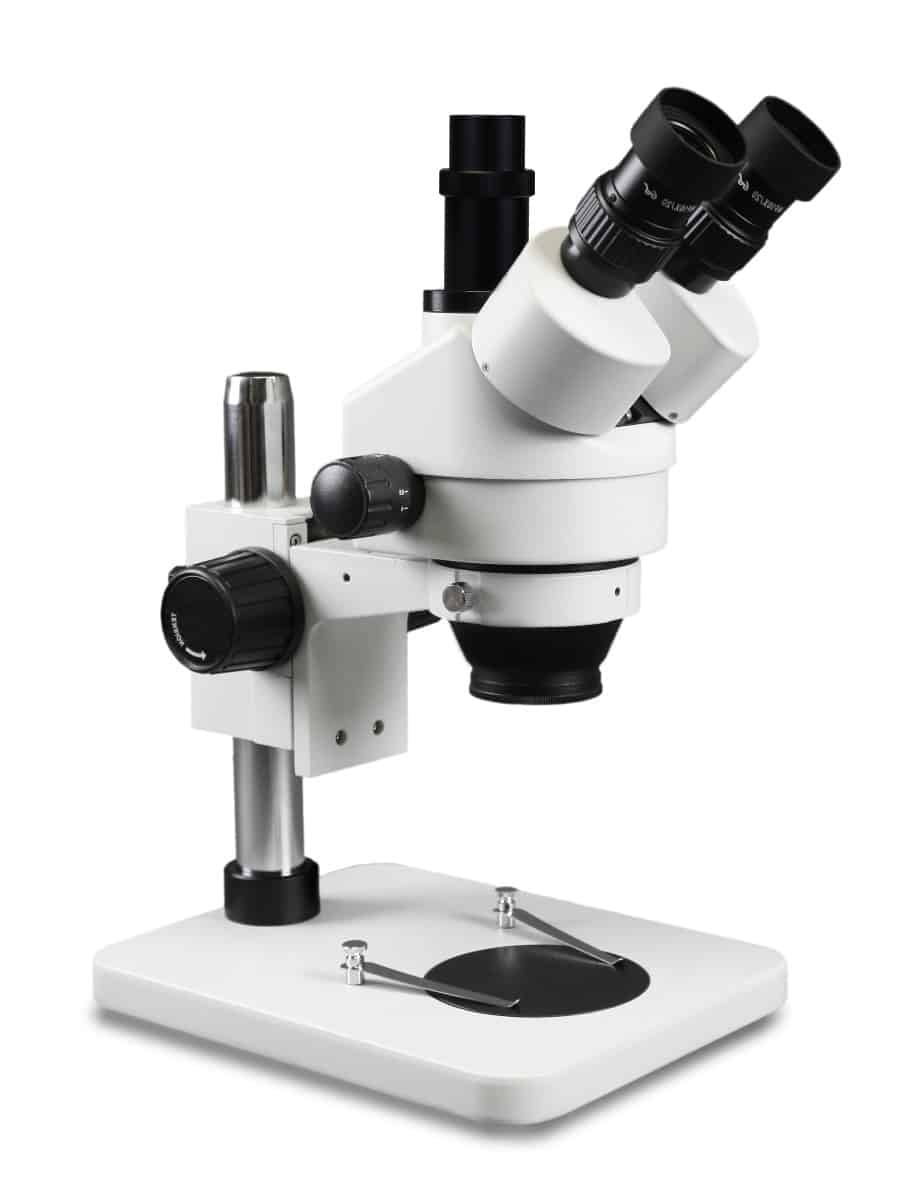 This trinocular zoom stereo microscope is ideal for laboratory, industrial or medical applications. Using its high resolution, great depth, and a large field of view, it is the perfect instrument for viewing any three-dimensional or temperature-sensitive specimen or object. Features a simul-focal trinocular head which means the photo port and both eyepieces can be used simultaneously.