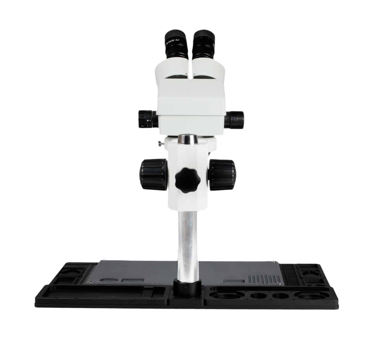 This binocular zoom stereo microscope is ideal for electronic and industrial applications. Using its high resolution, great depth, and a large field of view, it is the perfect instrument for viewing any three-dimensional specimen or object.