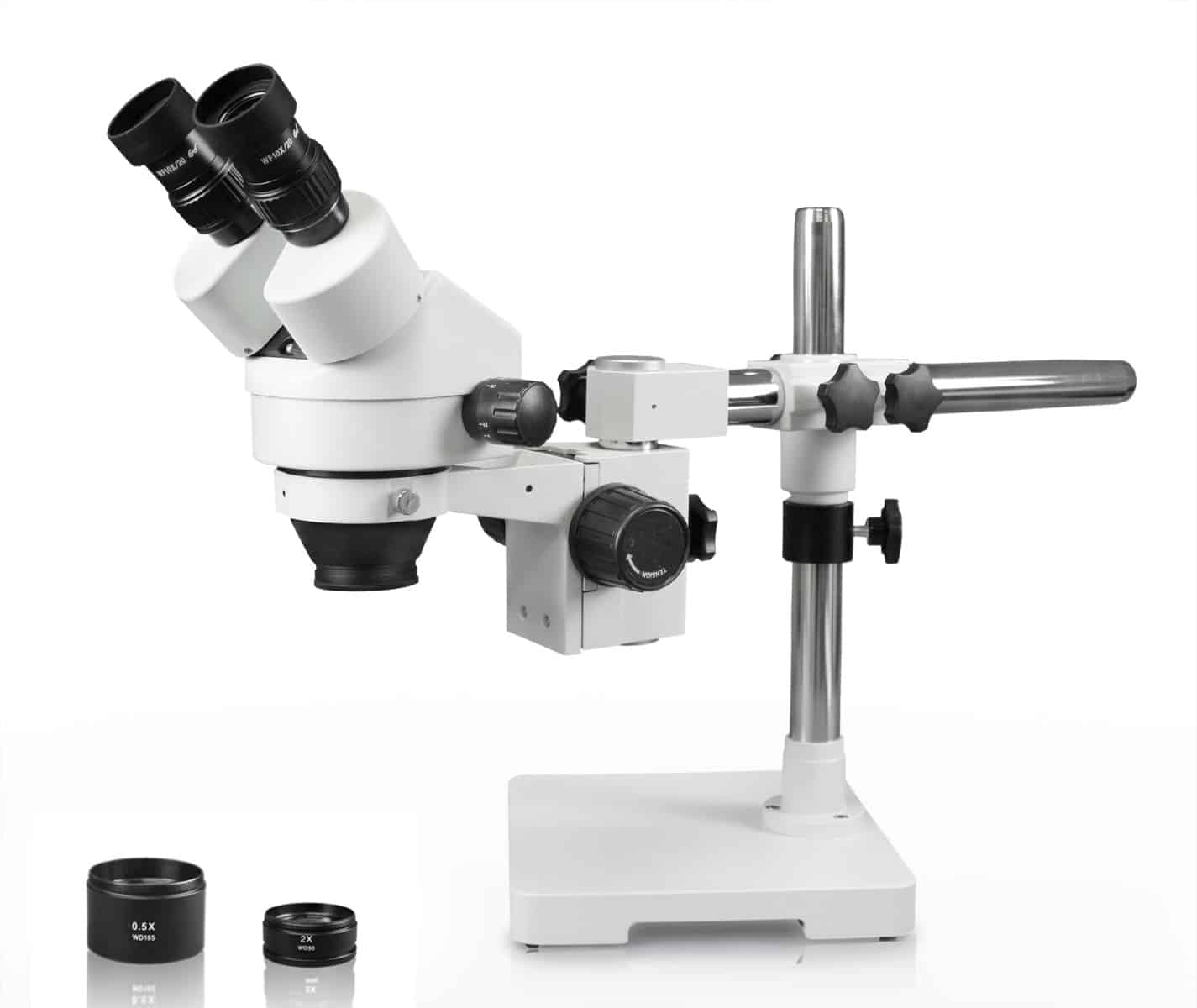 This binocular zoom stereo microscope is ideal for laboratory and industrial applications. Using its high resolution, great depth, and a large field of view, it is the perfect instrument for viewing any three-dimensional specimen or large objects.