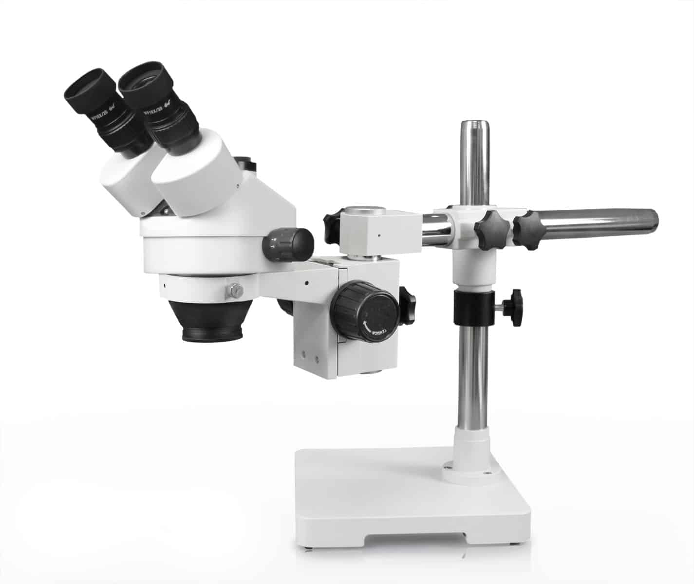 This trinocular zoom stereo microscope is ideal for laboratory and industrial applications. Using its high resolution, great depth, and a large field of view, it is the perfect instrument for viewing any three-dimensional specimen or large objects. Features a simul-focal trinocular head which means the photo port and both eyepieces can be used simultaneously.