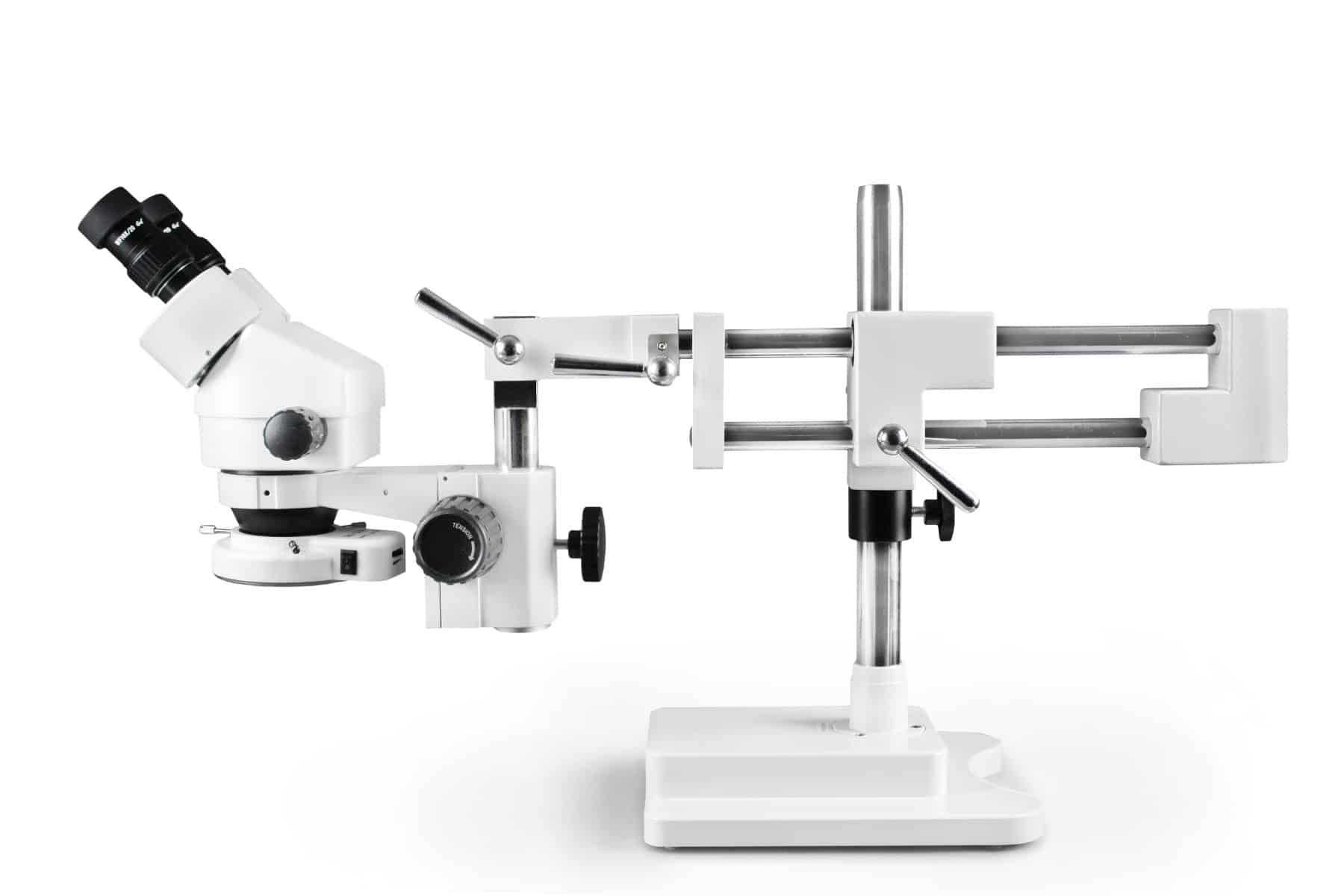 This binocular zoom stereo microscope is ideal for laboratory and industrial applications. Using its high resolution, great depth, and a large field of view, it is the perfect instrument for viewing any three-dimensional specimen or large objects. The solid cross block and brass inserts improve movement, while the friction collar secures the peg and allows the microscope to rotate around a vertical axis. Its rotating, swiveling, and tilting functionalities allow for it to cover wide, horizontal and vertical viewing areas; making it sure to meet your flexibility requirements. Packed in a fitted Styrofoam box, and includes a dust cover and an instruction manual. 5-year limited warranty.
